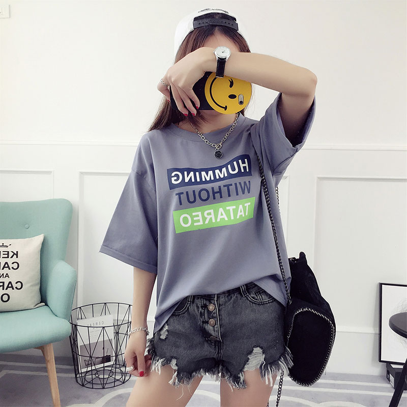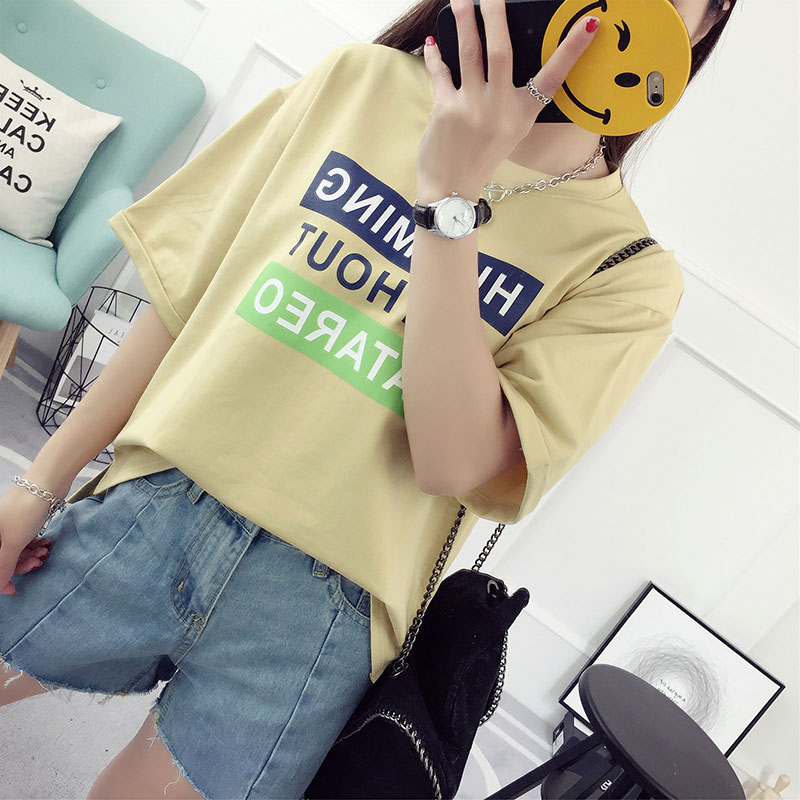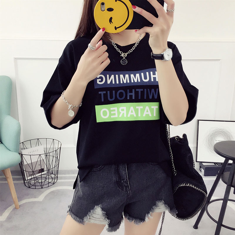 字母t恤女中袖春裝新款時尚上衣寬松韓版學生百搭半截袖夏裝