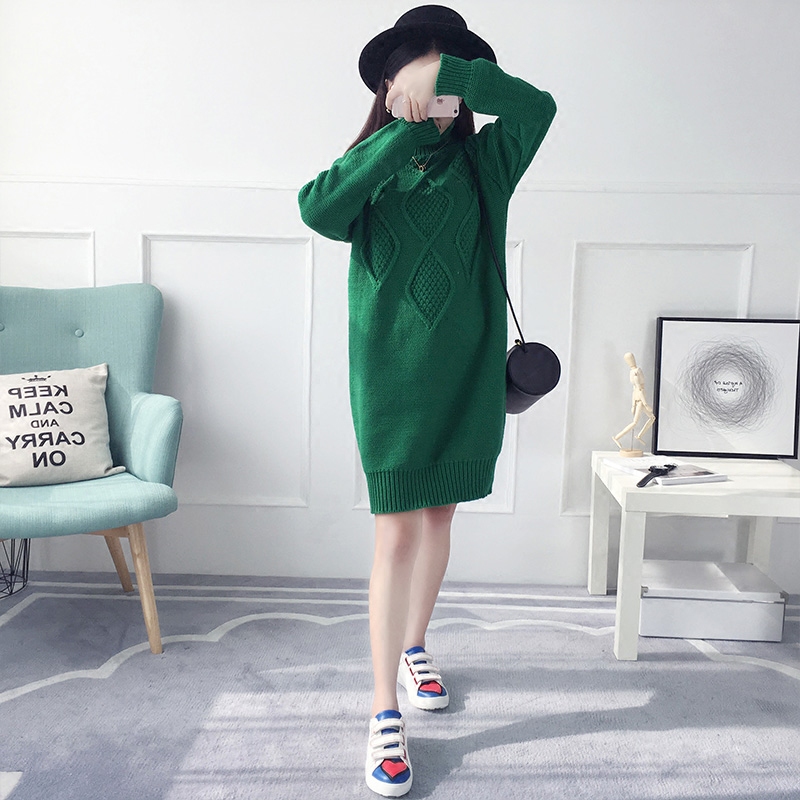 / 韓版半高領秋冬套頭毛衣女針織衫長袖寬松中長款粗毛線衣服新款潮