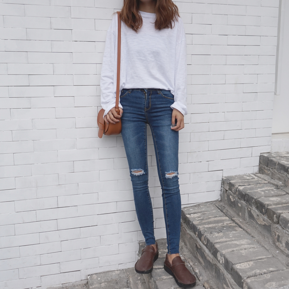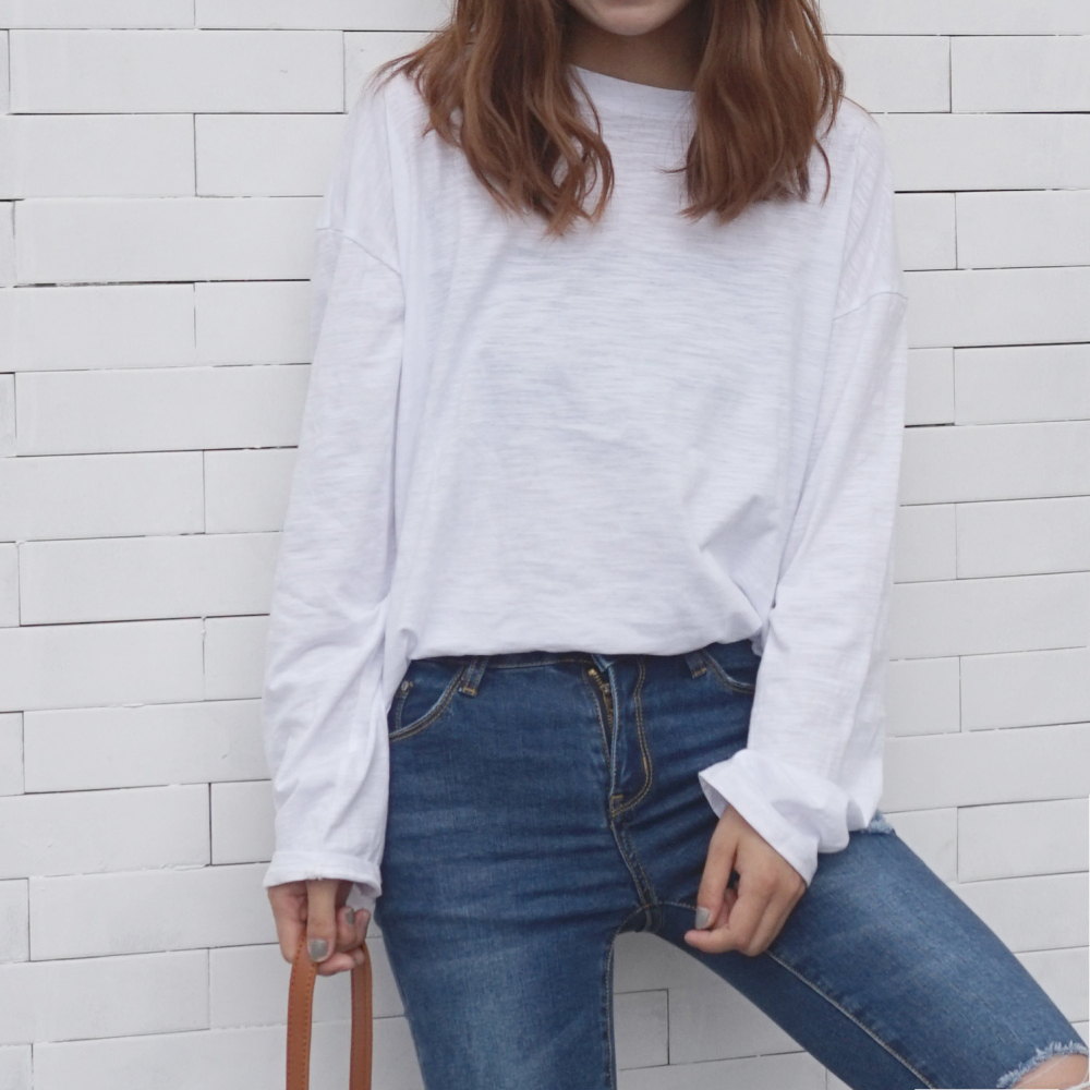 / 秋裝韓版新款女裝寬松顯瘦白色百搭學生純色長袖T恤上衣潮