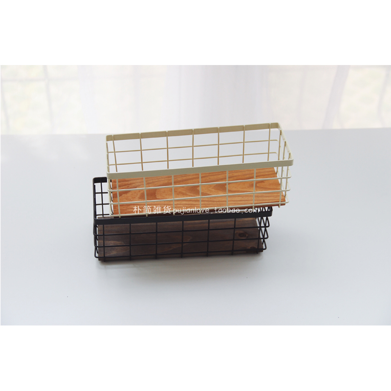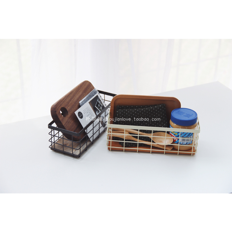 / 樸簡 日式復古鐵藝提手收納籃子筐桌面方形收納置物籃 桌面收納盒