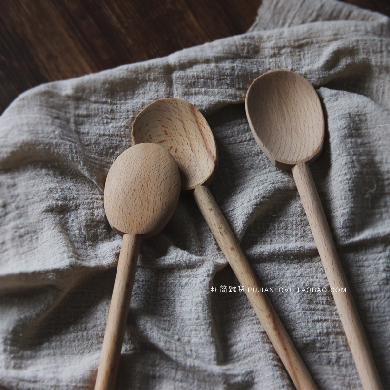 法式長柄圓頭勺,特有的手工感勺頭使這款不起眼兒的木勺增色很多~