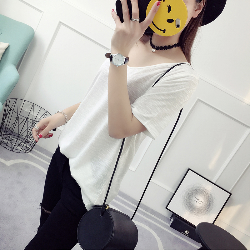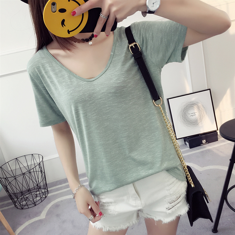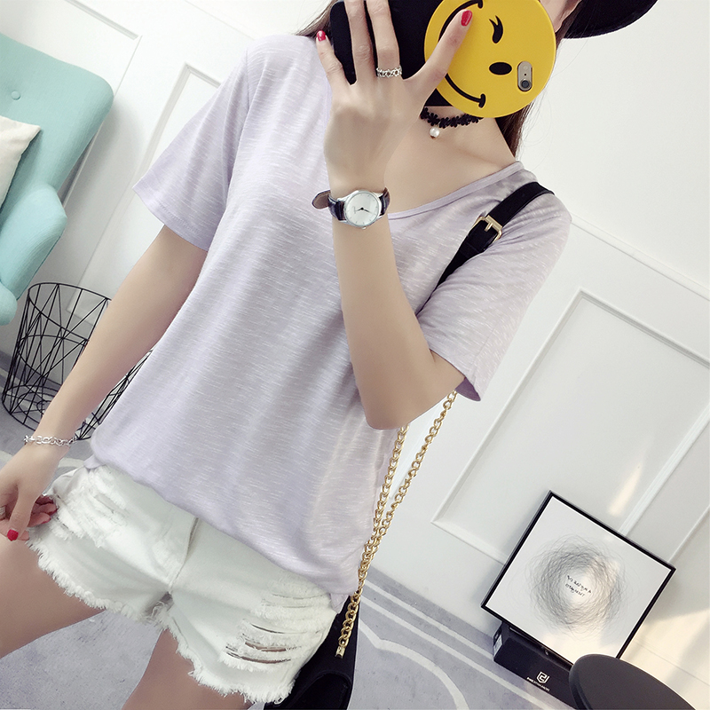 純色t恤女短袖打底衫春季新款女夏裝韓版寬松百搭學院風上衣