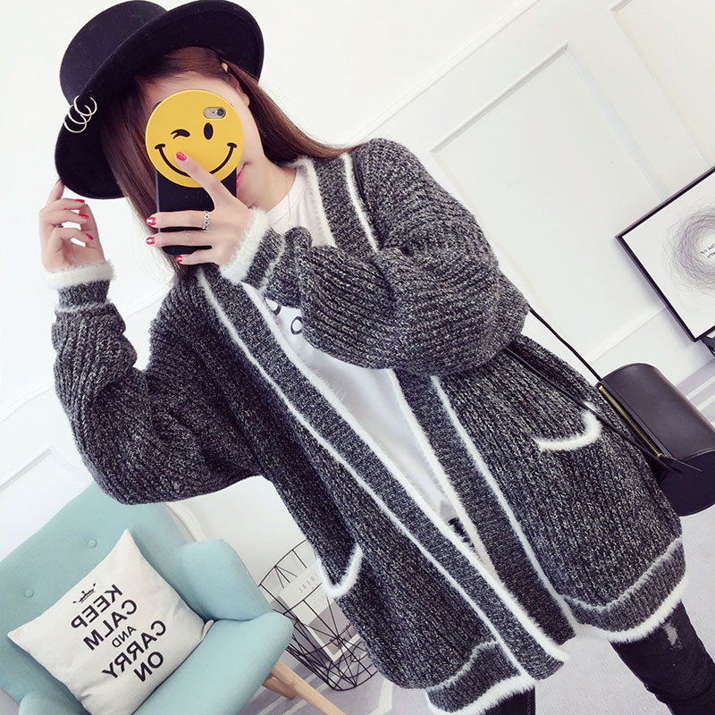 針織外套開衫毛衣女春秋中長款厚寬松韓版春秋冬學生百搭上衣