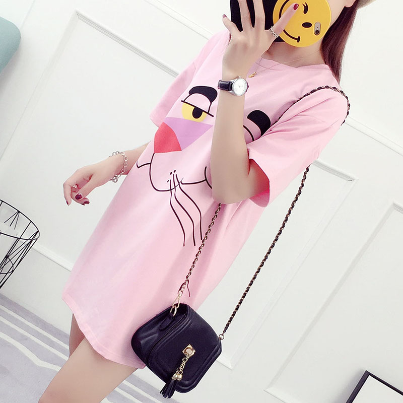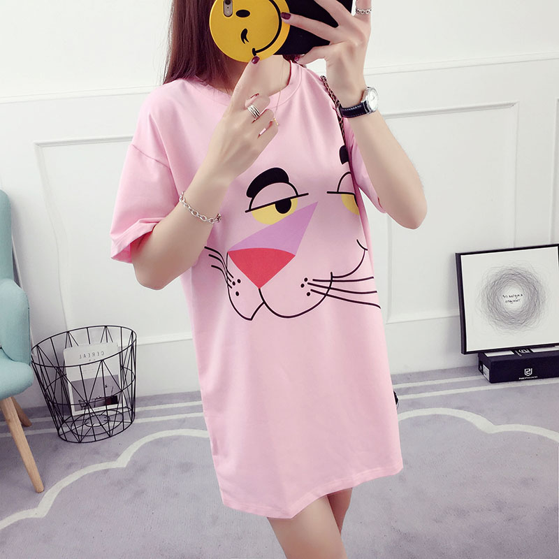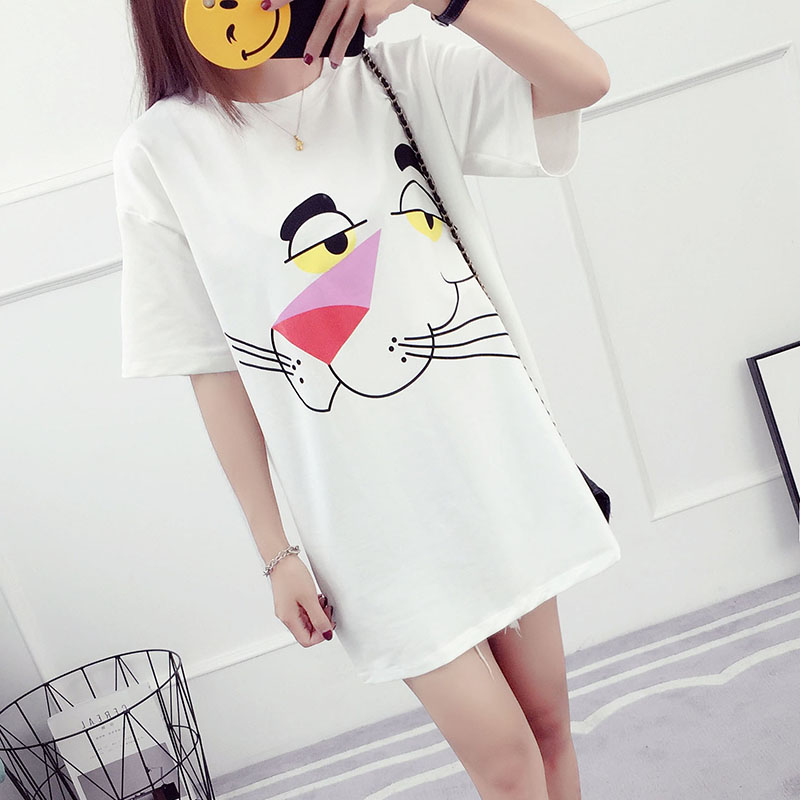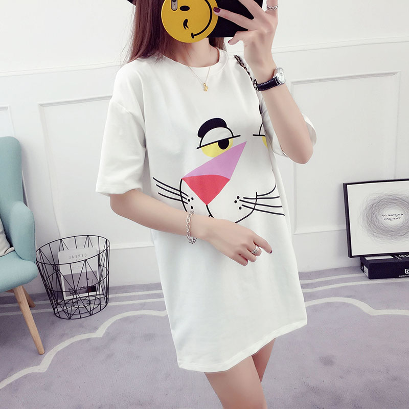 / 韓版百搭學生中長款短袖t恤女夏季寬松打底衫卡通學院風夏裝