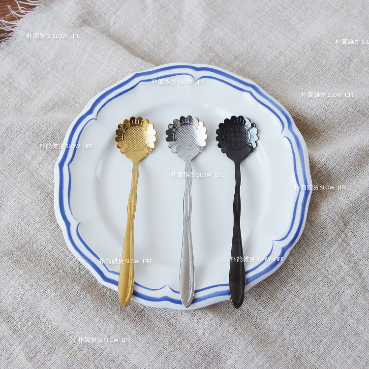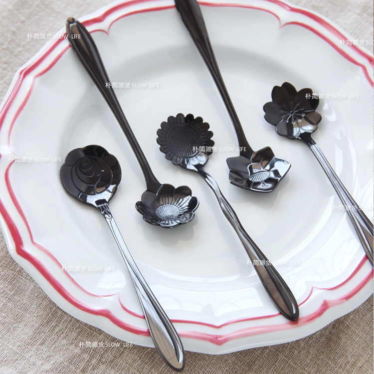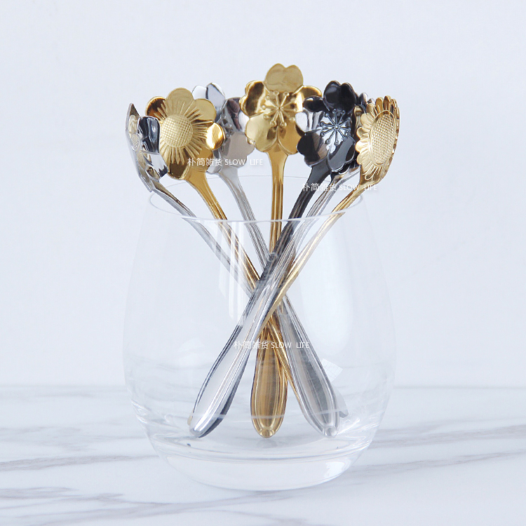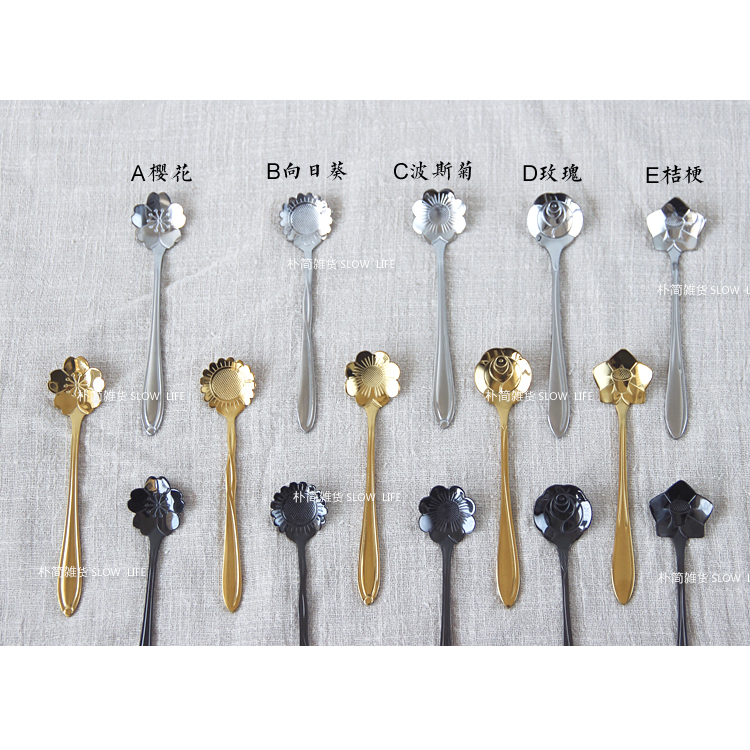 zakka日式不銹鋼櫻花朵形狀咖啡勺 甜品攪拌勺子 西餐餐具