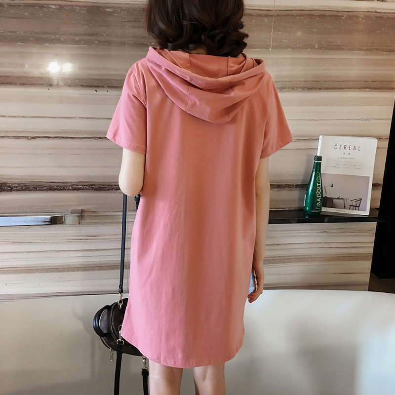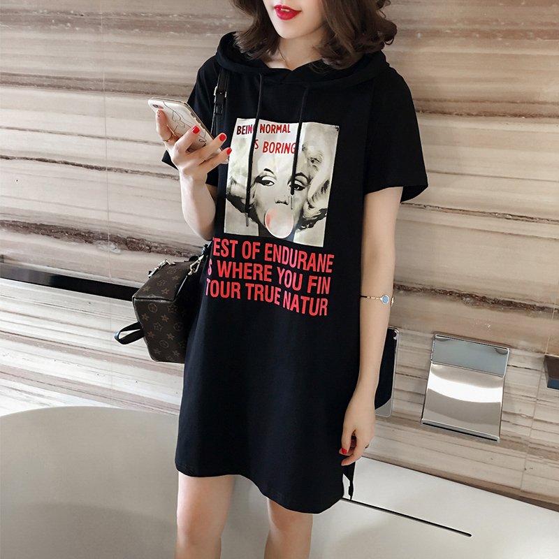 / 天天特價春夏韓版中長款連帽衛衣女寬松短袖印花休閑時尚潮連衣裙