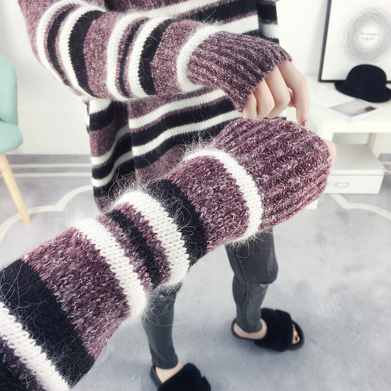 / 套頭毛衣女秋冬韓版寬松學院風條紋針織衫外套女裝秋裝新款潮