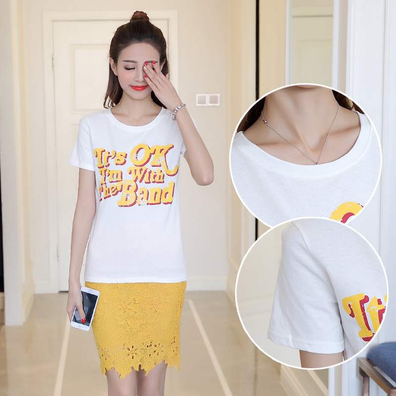 / 夏季小清新套裝女時尚潮寬松短袖T恤蕾絲半身裙兩件套連衣裙