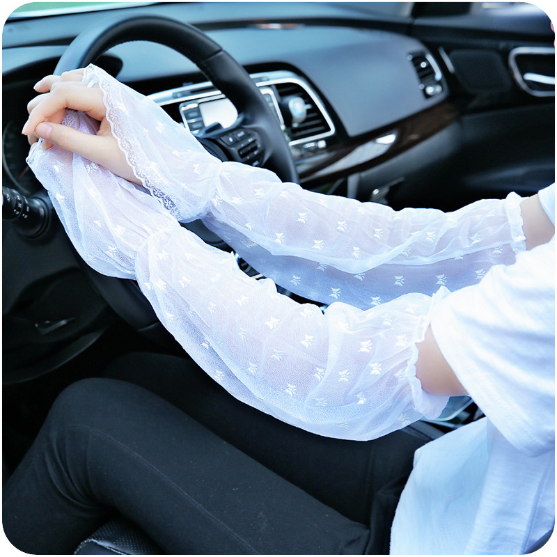 / 防曬蕾絲袖套夏季女長款手臂套袖電動車騎行遮陽雪紡透氣花色袖套