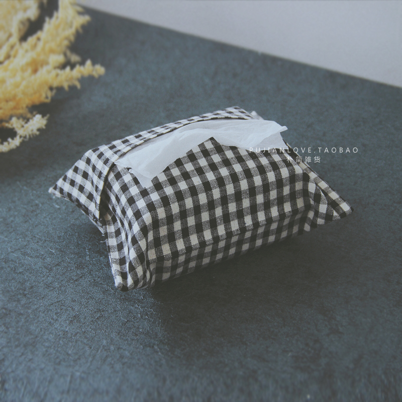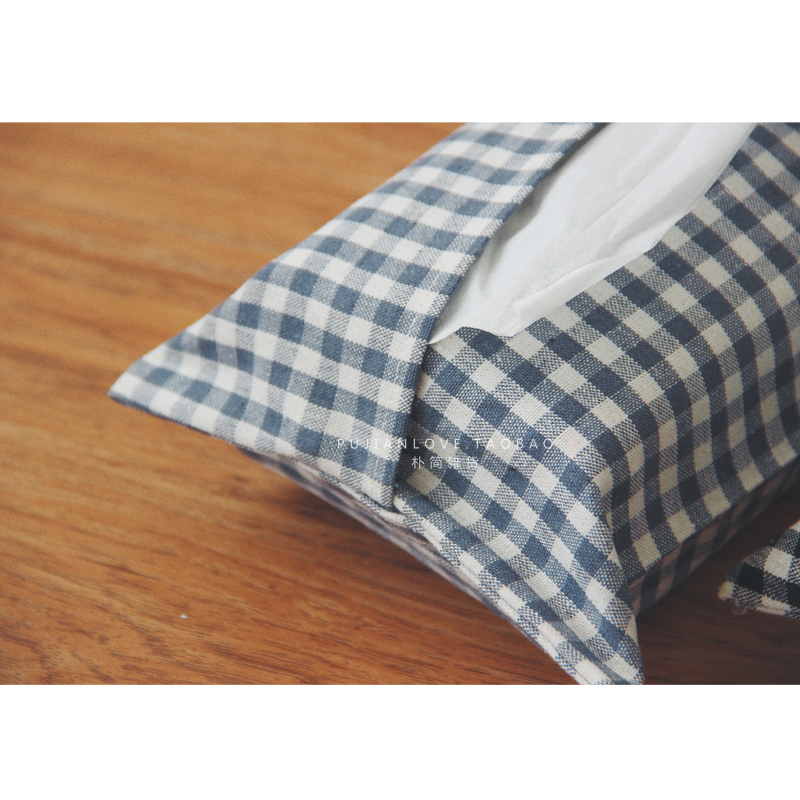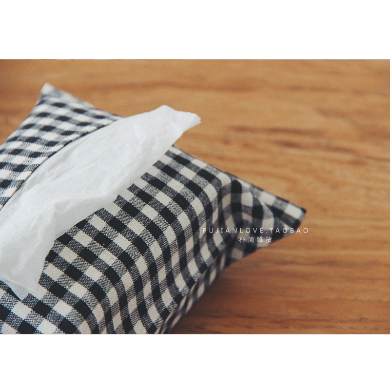 樸簡 手作日式布藝棉麻格子抽紙巾套車載紙巾盒紙巾袋 家用餐巾盒