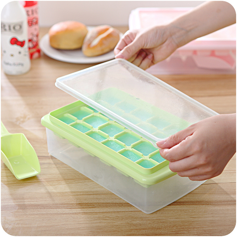 創意帶蓋帶儲冰盒送冰鏟制冰凍冰格家用冰塊冰箱冰柜制冰模具套裝