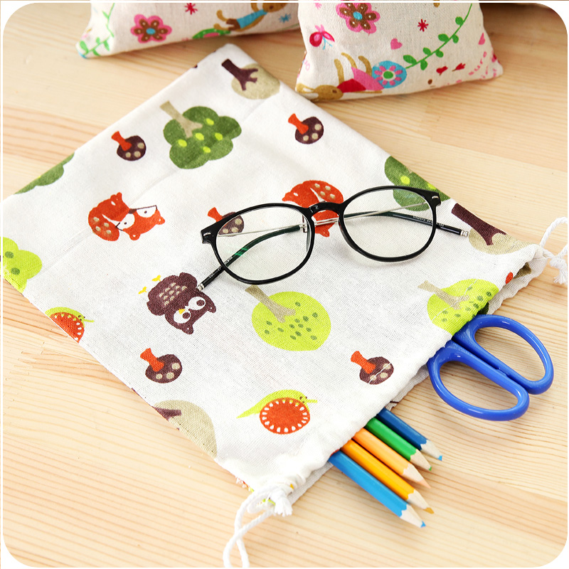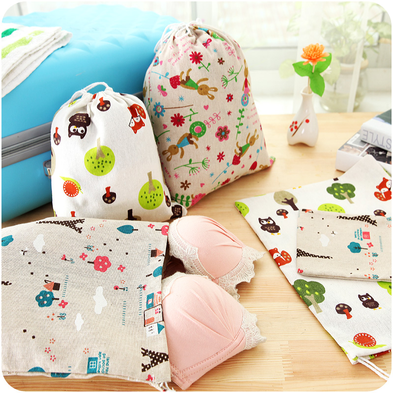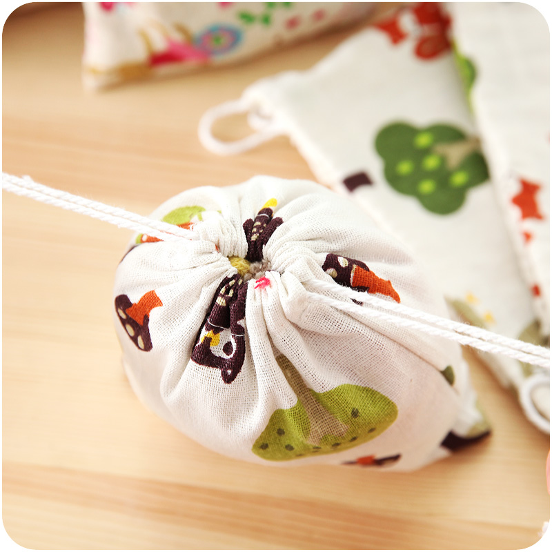 九姑姑印花棉麻旅行收納袋束口袋茶葉行李抽繩袋衣服收納袋碎花色