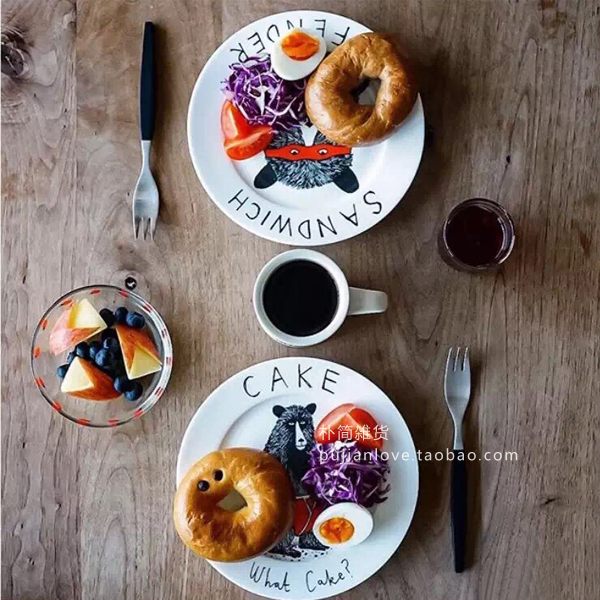 字母盤 北歐手繪卡通動物創意骨瓷西餐盤餐具牛排盤盤子