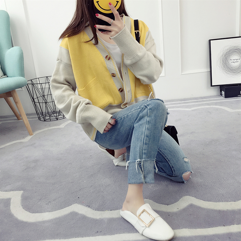 / 針織開衫女外套春裝新款潮韓版寬松百搭學生長袖線衣短款毛衣