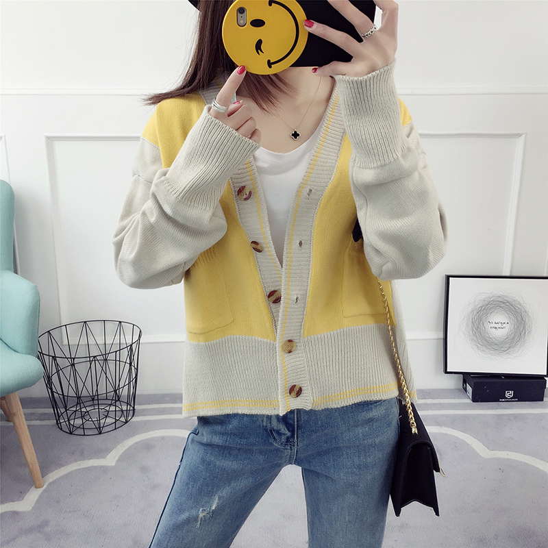 針織開衫女外套春裝新款潮韓版寬松百搭學生長袖線衣短款毛衣