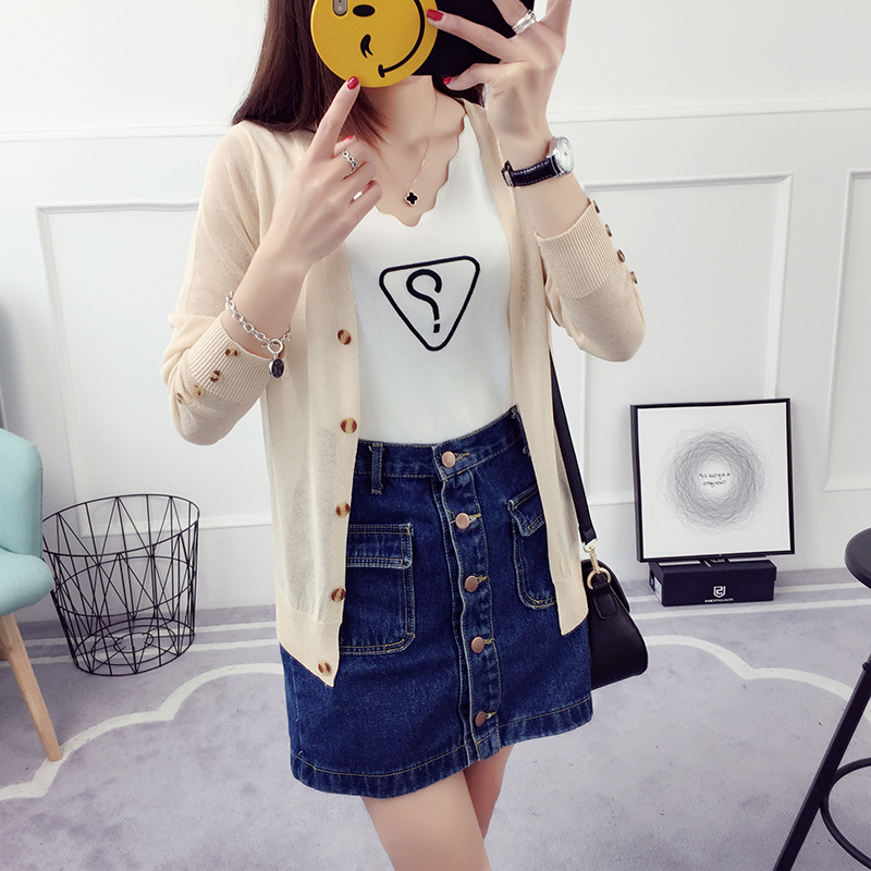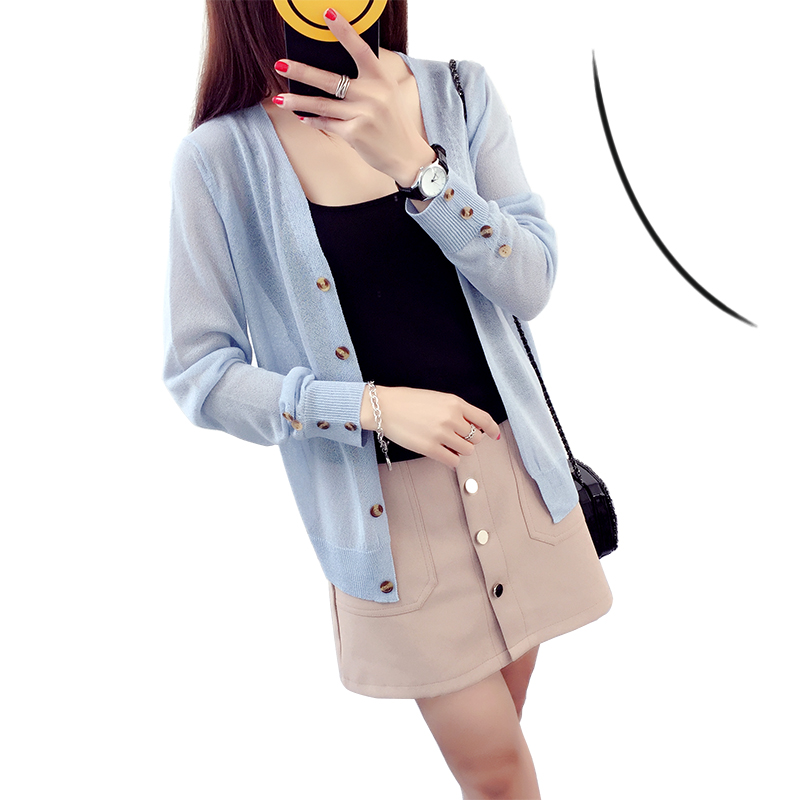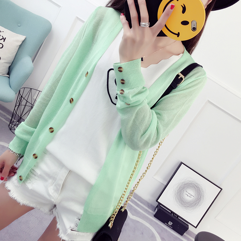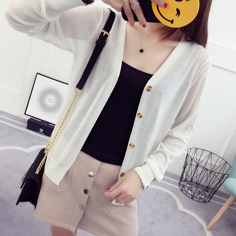 冰絲針織衫女開衫短款夏季外套薄款外搭網紗長袖防曬衣空調衫