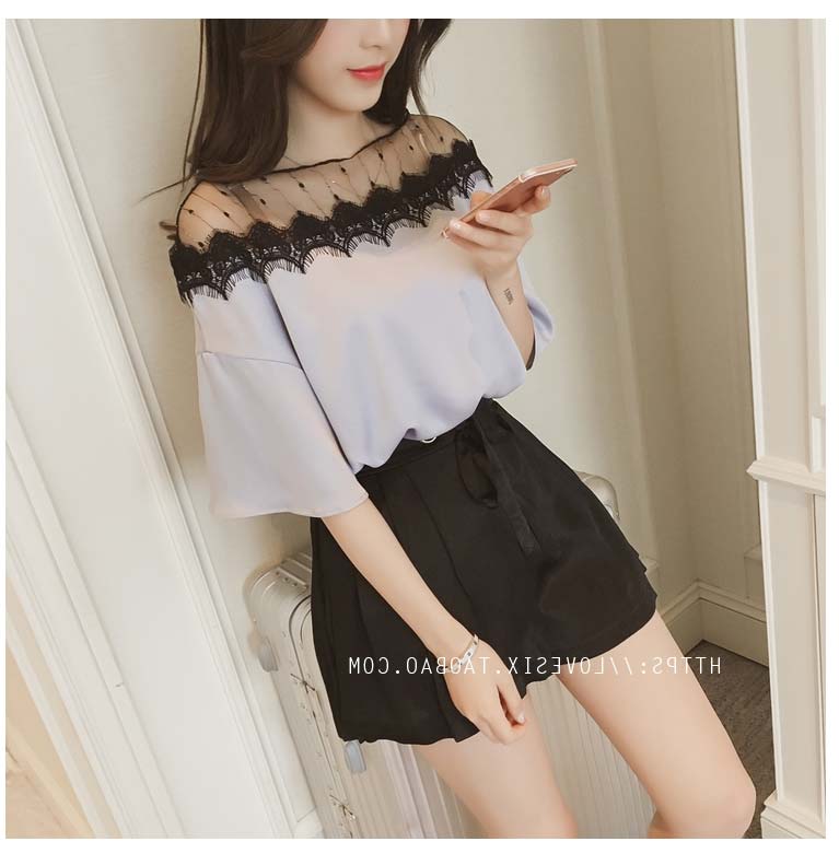 / 女裝春夏新款韓版學生寬松雪紡衫套裝女休閑闊腿褲短褲兩件套