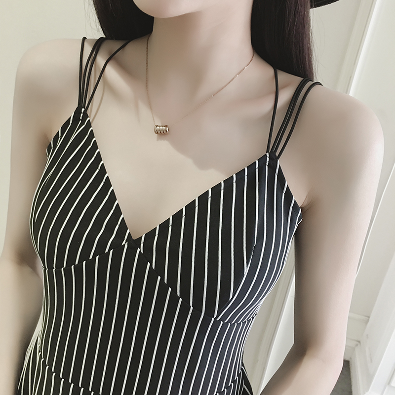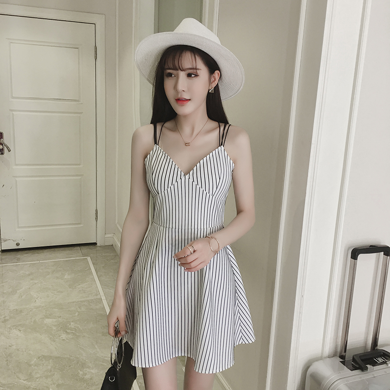/ 春夏新款女裝韓版派對小黑裙修身顯瘦交叉吊帶抹胸連衣裙禮服