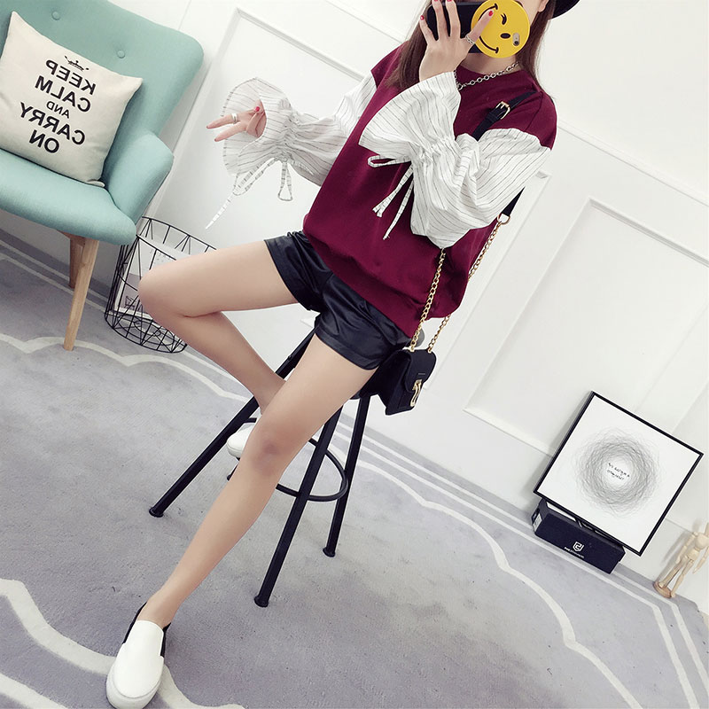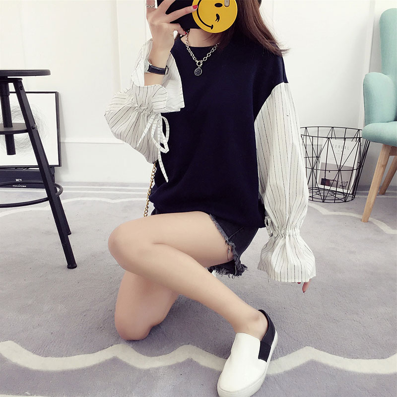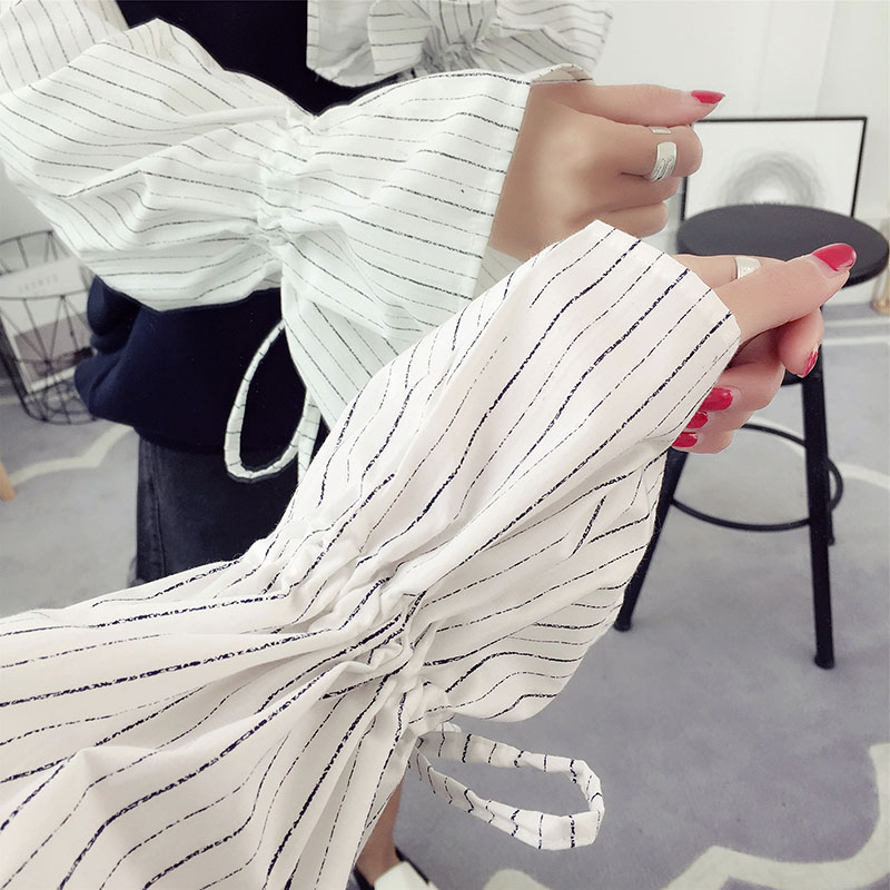 喇叭袖t恤女長袖假兩件上衣學生韓版百搭寬松春裝小衫夏裝體恤潮