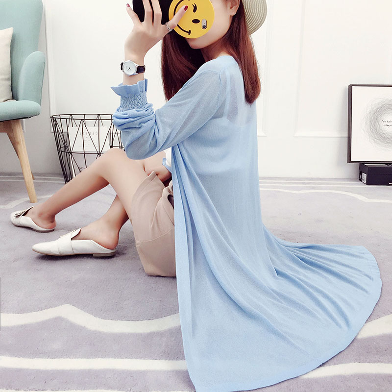 針織衫外套女開衫長袖新款喇叭袖上衣韓版夏季薄款中長款防曬