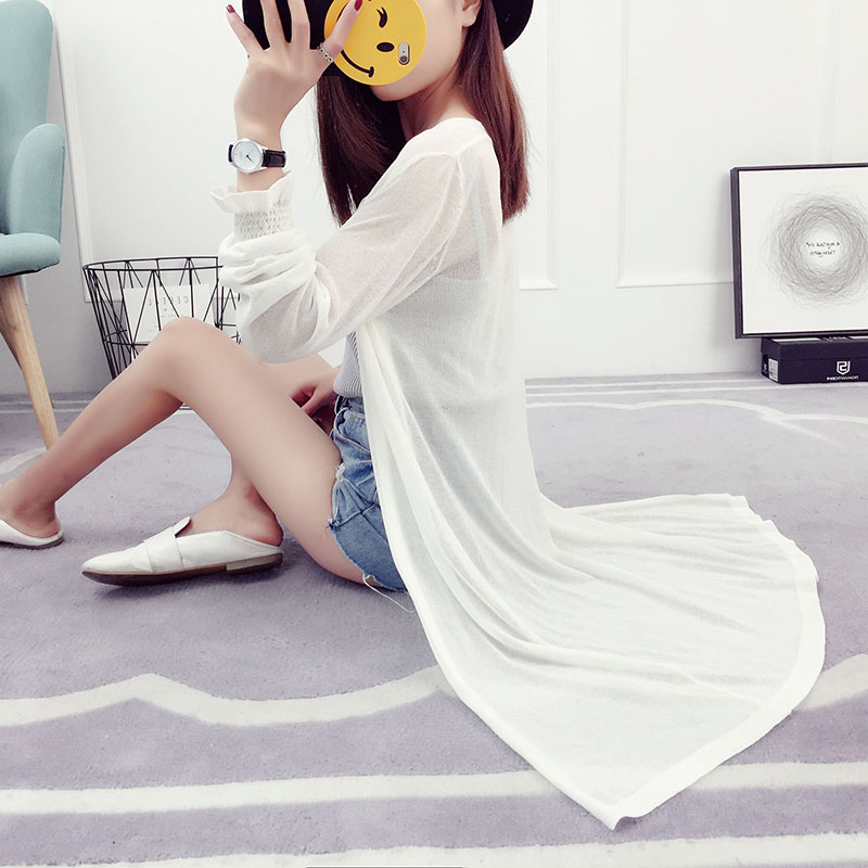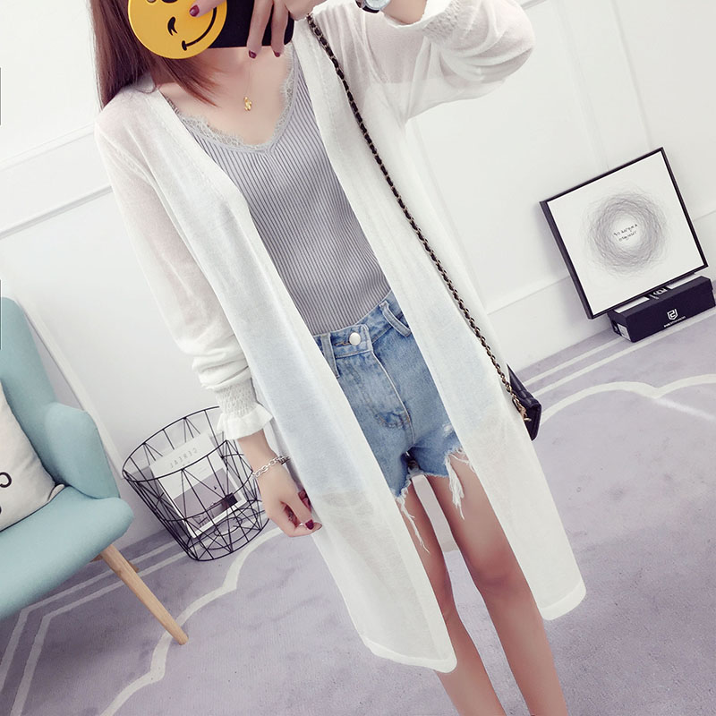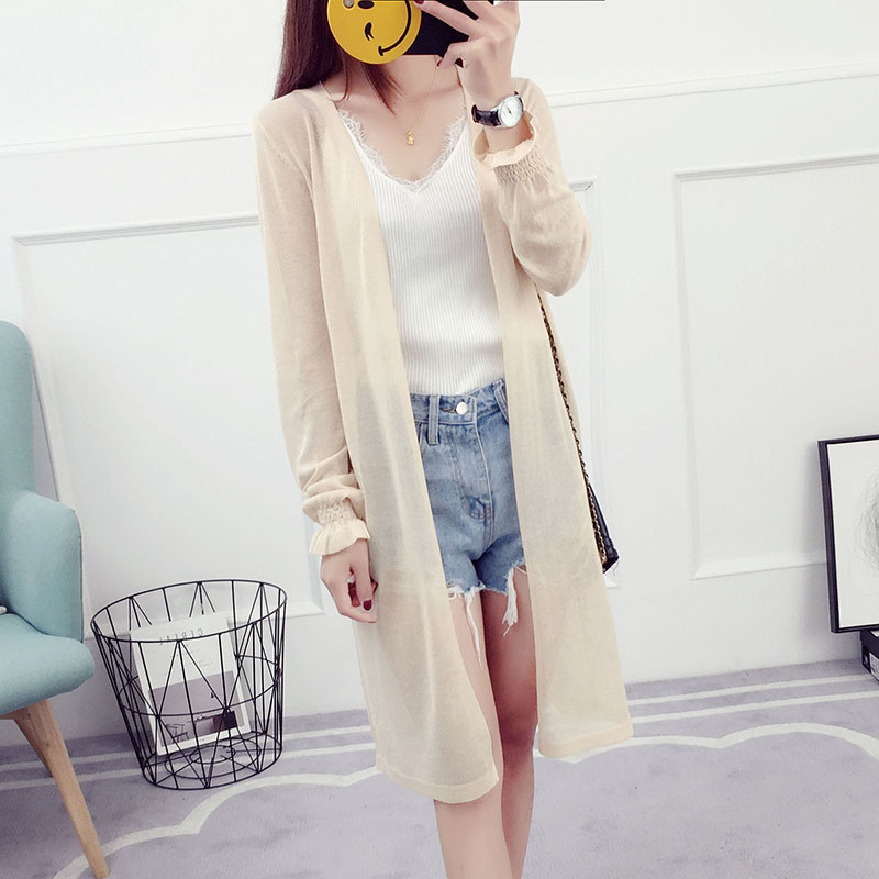 / 針織衫外套女開衫長袖新款喇叭袖上衣韓版夏季薄款中長款防曬
