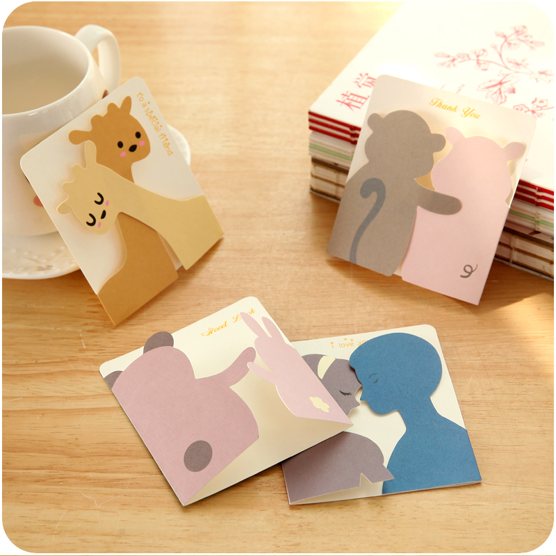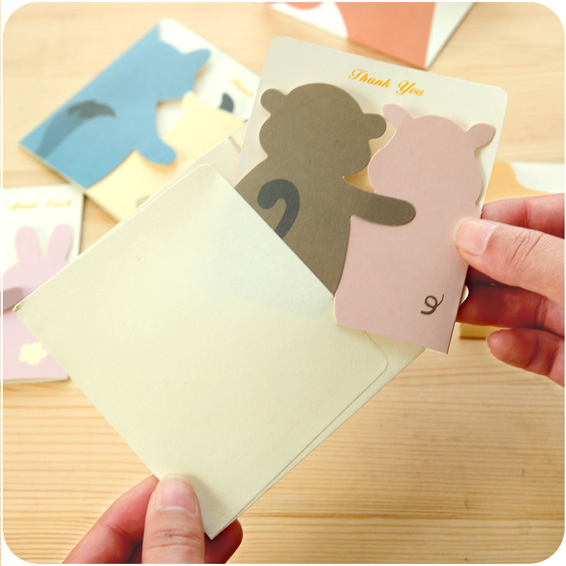 / 小動物賀卡創意DIY祝福生日新年帶信封留言小卡紙片立體形象卡通