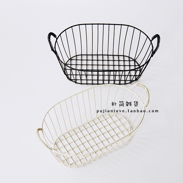 / 樸簡 復古鐵藝提手收納籃子筐桌面收納置物籃水果面包籃拍攝道具