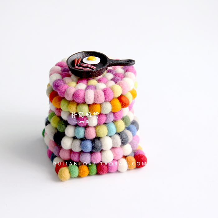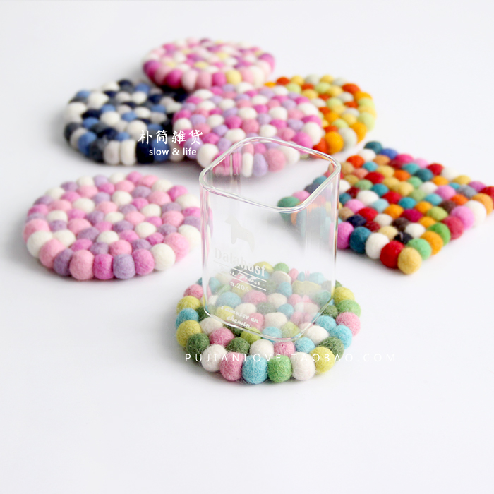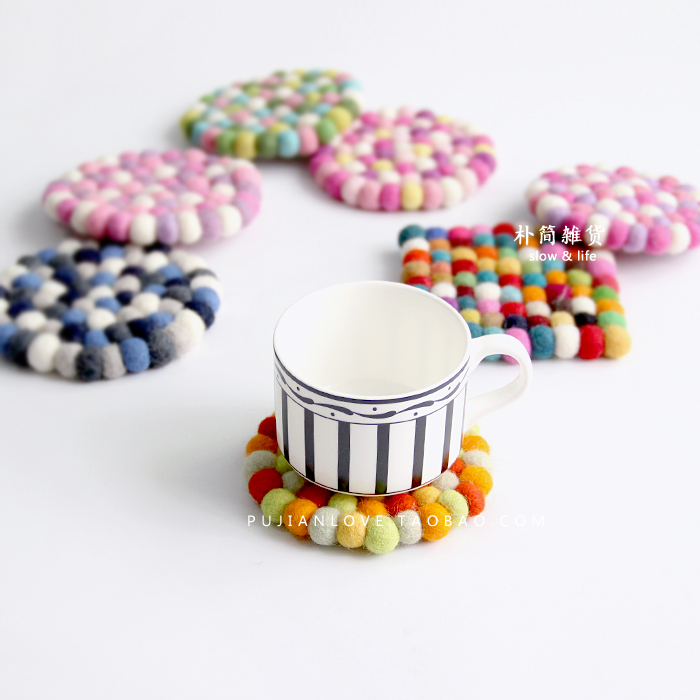 樸簡 zakka日本同款日系彩色毛氈杯墊 球球杯墊 餐墊隔熱墊