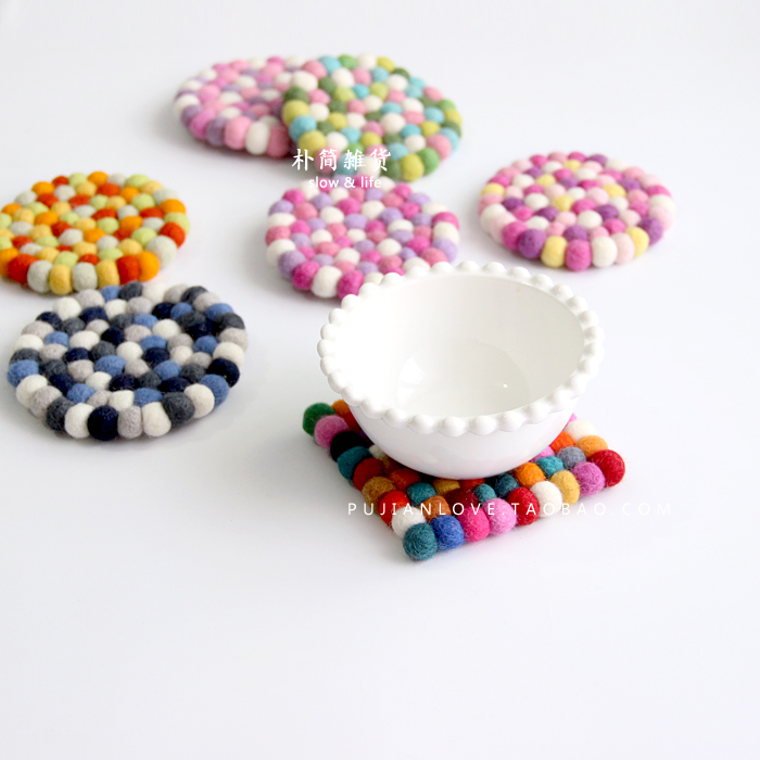 / 樸簡 zakka日本同款日系彩色毛氈杯墊 球球杯墊 餐墊隔熱墊