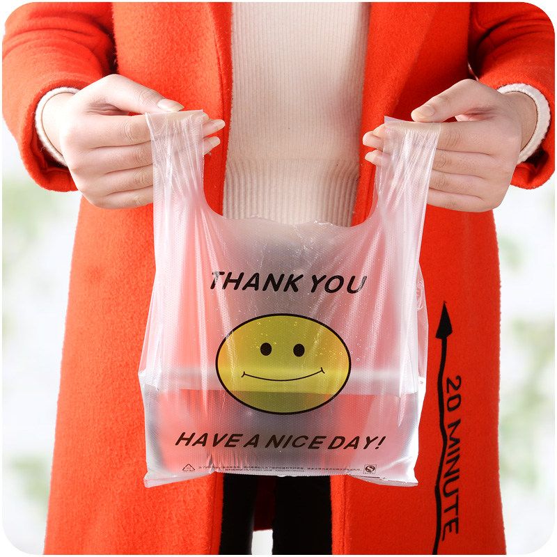 / 加厚透明笑臉食品袋手提塑料袋子超市購物打包袋背心馬夾袋50個裝