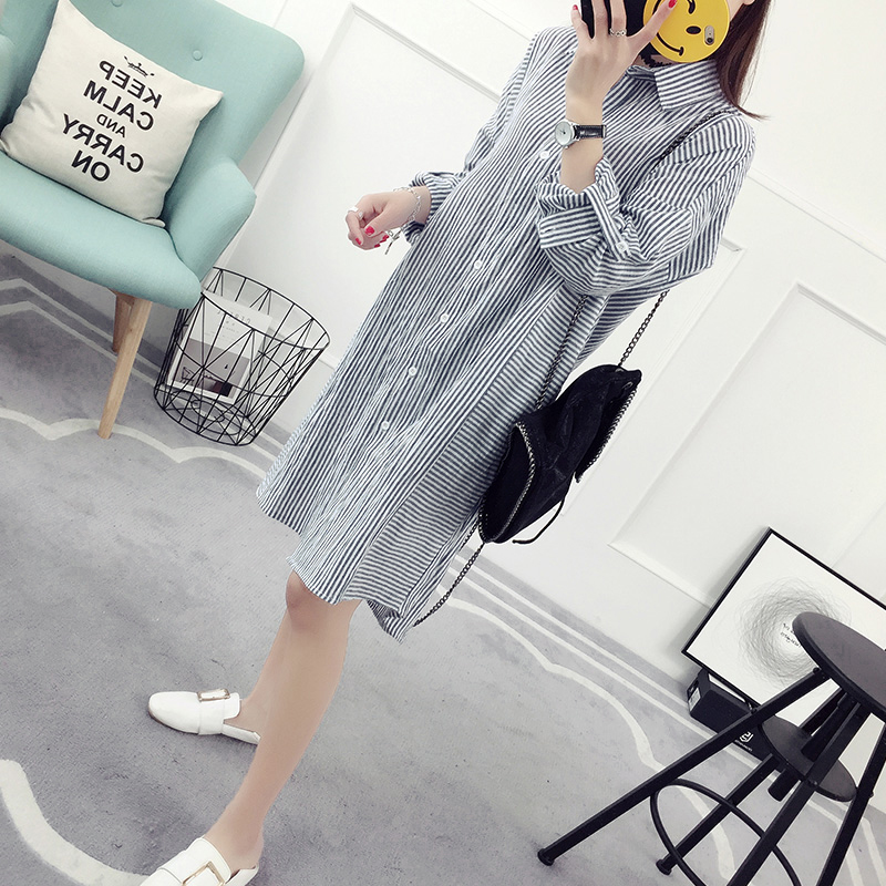 豎條紋襯衫女長袖寬松韓版中長款春裝新款百搭學生襯衣學院風