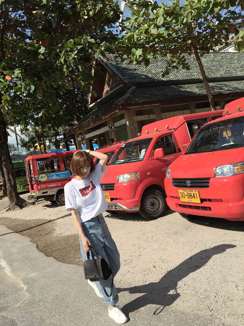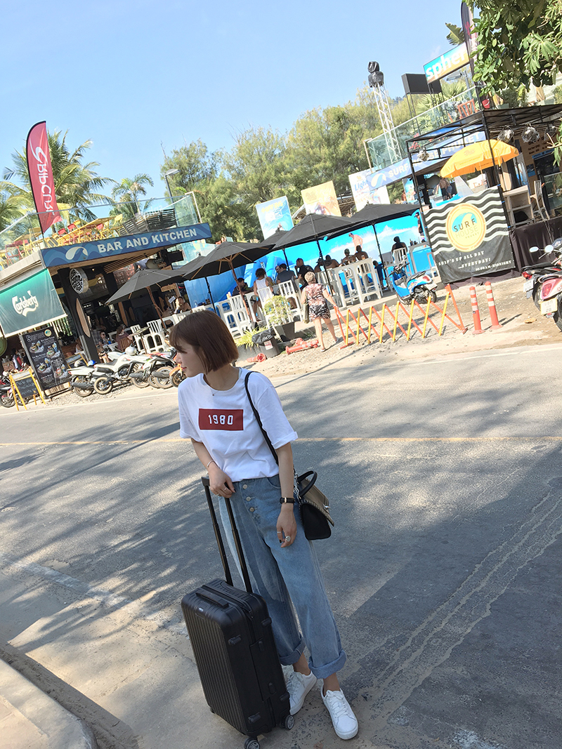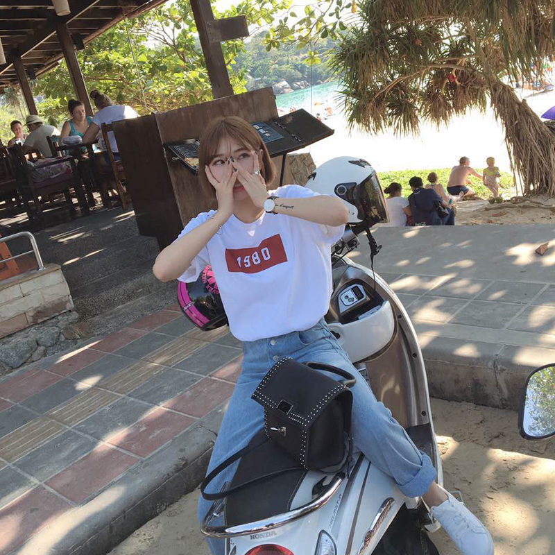 / 春夏新款韓版寬松顯瘦白色簡約數字圓領短袖圓領上衣T恤女裝