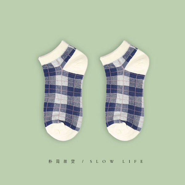 / 樸簡 秋冬日系文藝女生中短筒簡約格子襪子