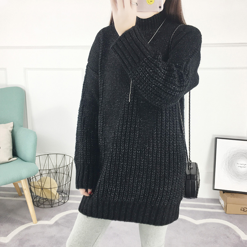 韓版秋冬套頭毛衣女寬松中長款針織衫粗毛線衣外套女裝新款潮