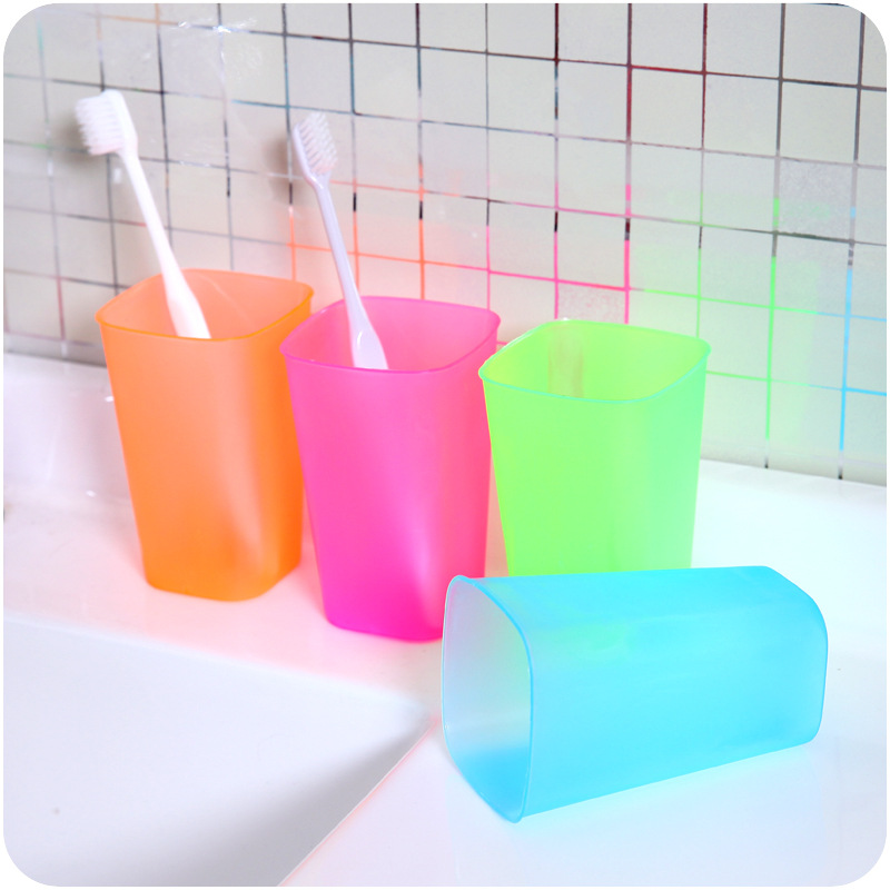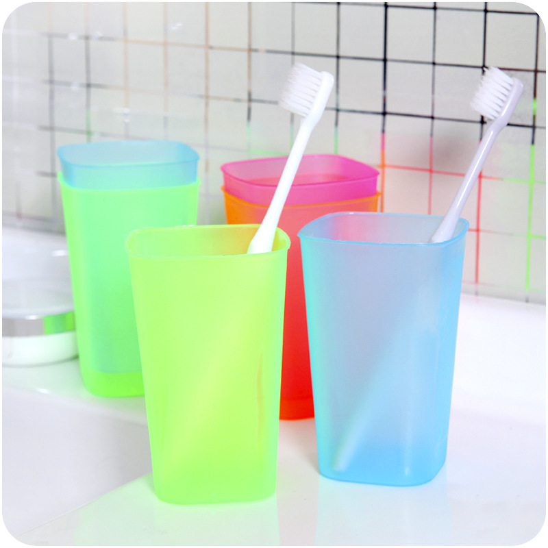 磨砂半透明多糖果色純 方形漱口杯刷牙杯 牙缸創意塑料加厚洗漱杯