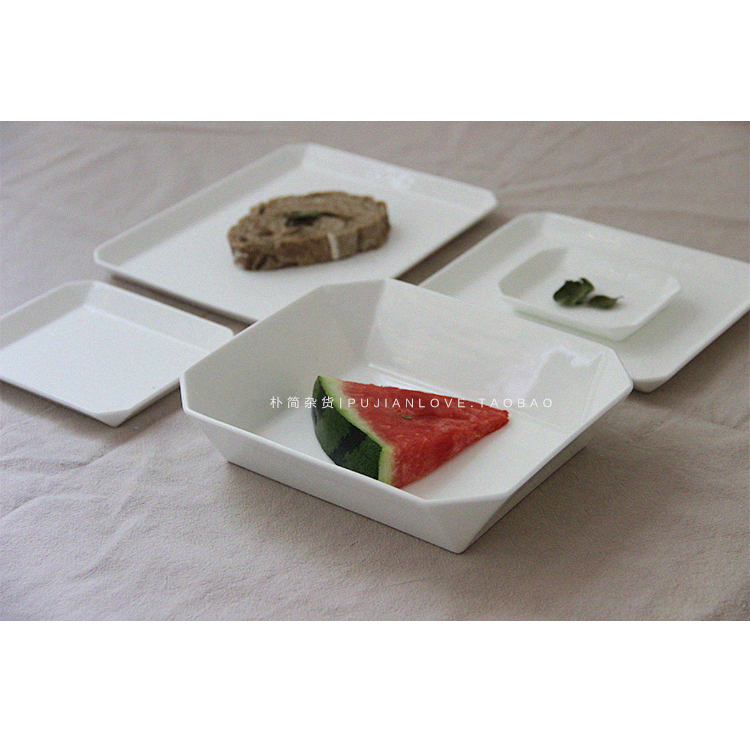 / 樸簡|北歐簡約幾何菱形陶瓷餐具 純白色碗盤 早餐盤 西餐盤