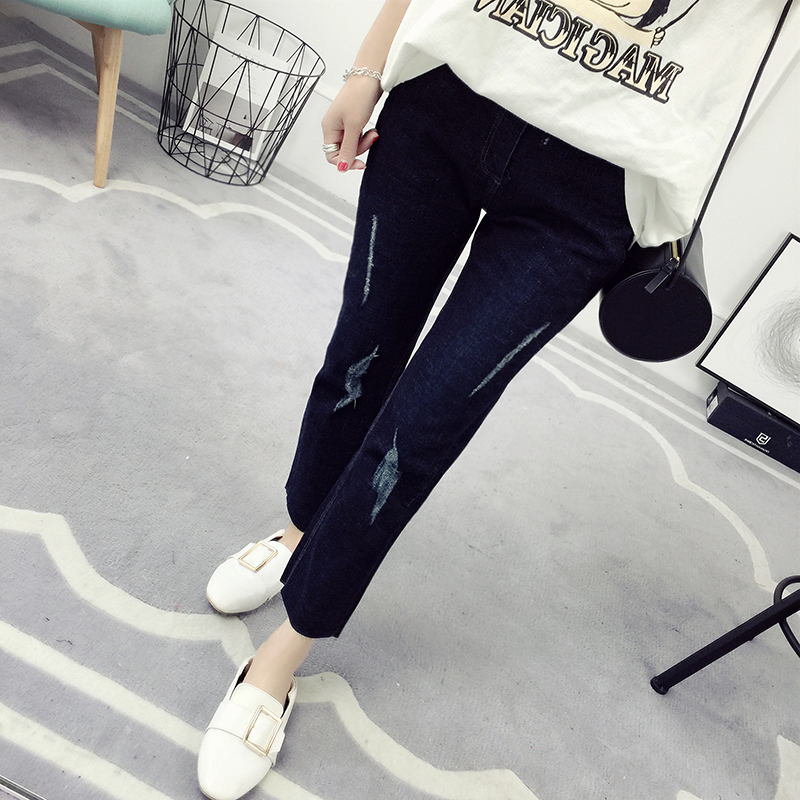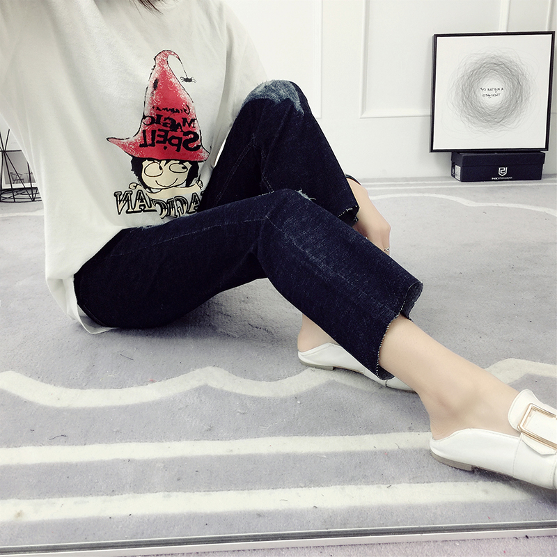 / 破洞牛仔褲女春夏季新款潮韓版學生直筒九分褲寬松顯瘦長褲子