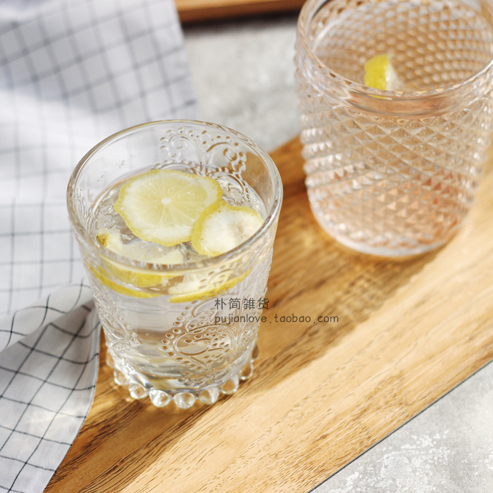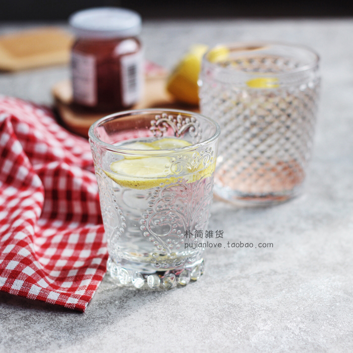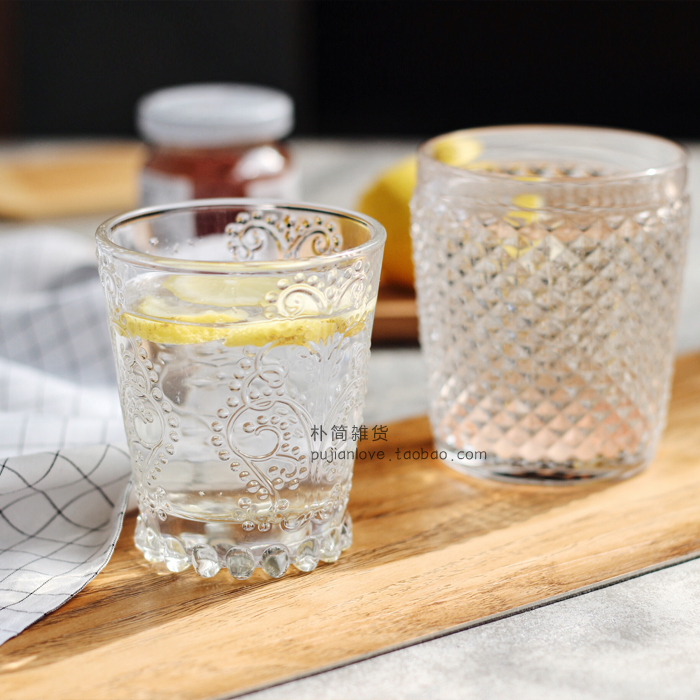 / 歐式復古浮雕玻璃杯子 水杯飲料杯 創意果汁杯洋酒杯 牛奶杯