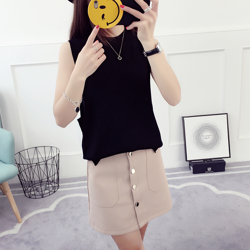 / 毛衣馬甲女春秋新款套頭寬松上衣針織短袖背心冰絲打底衫薄款