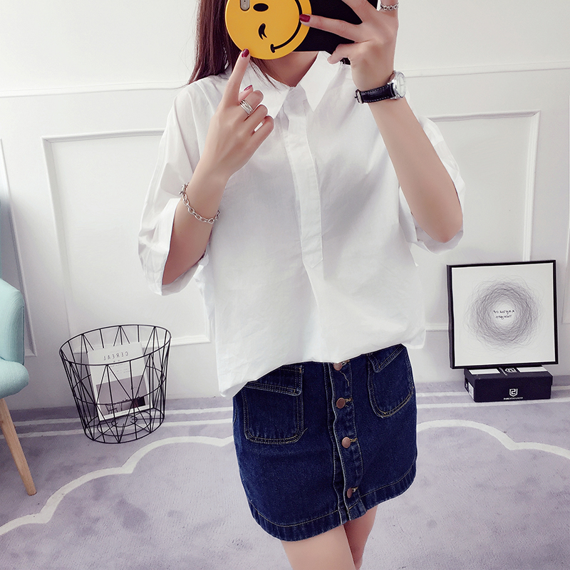 白襯衫女春秋新款潮百搭韓版學生中長款韓范寬松學院風短袖夏