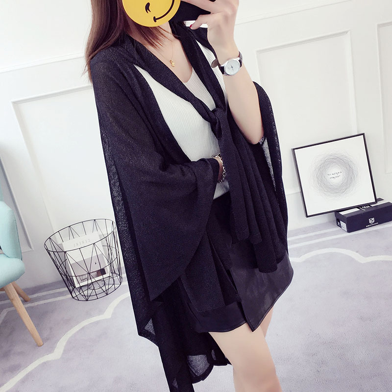 / 夏季披肩外搭女薄款中長款針織衫外套防曬衫開衫韓版斗篷百搭衣服