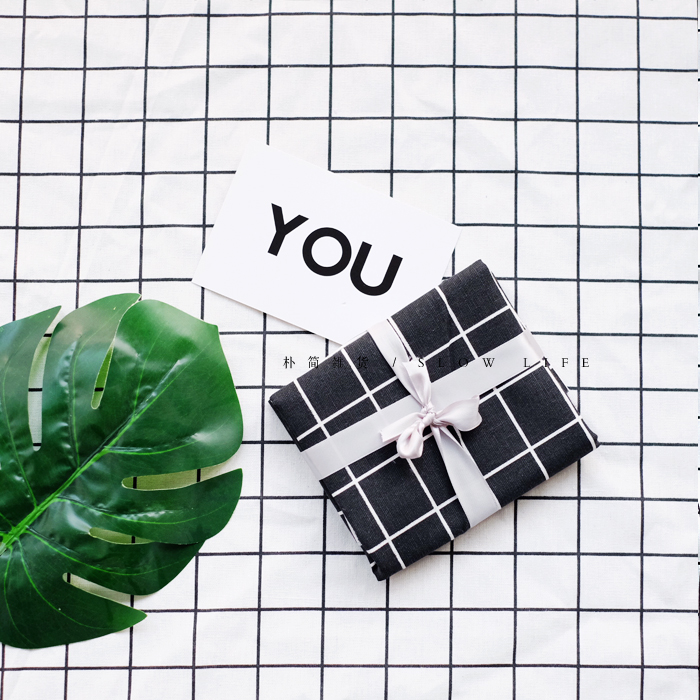 樸簡 ins黑白格子簡約棉麻美食飾品擺拍攝背景餐布 桌布餐巾