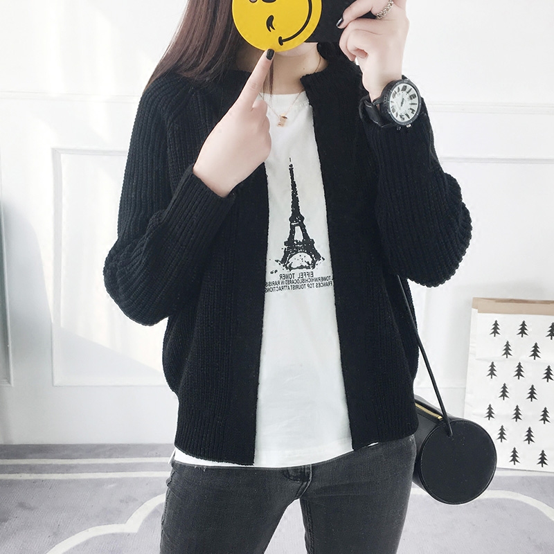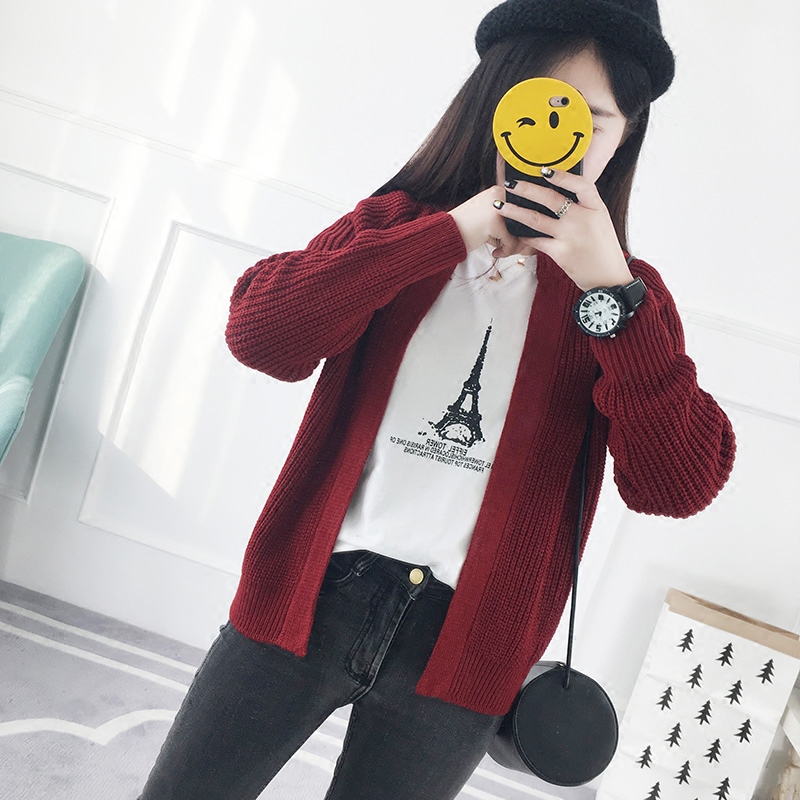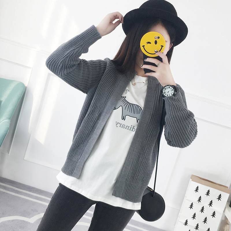/ 開衫女針織衫韓版短款長袖寬松毛衣純色外套厚春裝新款女裝潮