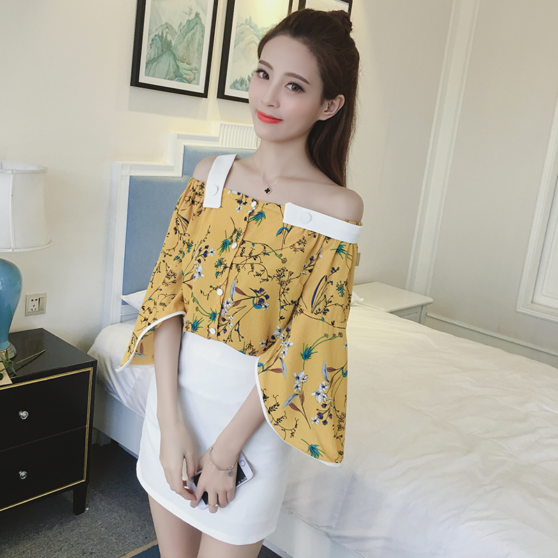 夏季韓版名媛氣質一字肩吊帶雪紡上衣兩件套女休閑半身短裙套裝潮