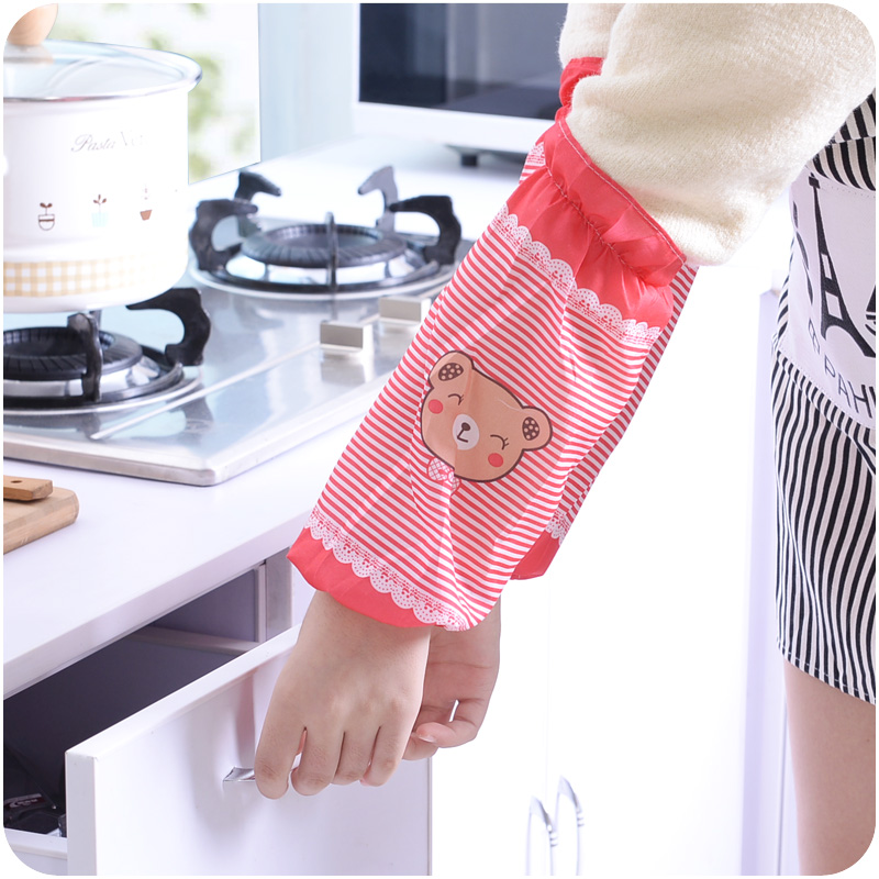 / 居家卡通碎花日用防污防護碎花袖套防水防油女士長款廚房袖套批量