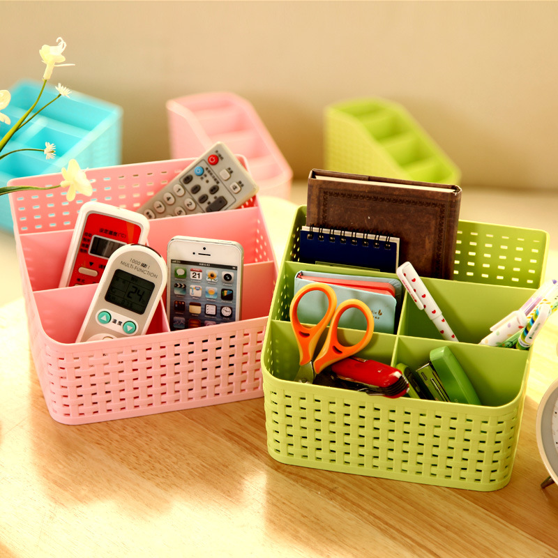 創意仿編織鏤空造型分格化妝品收納盒辦公桌面雜物分格整理盒多色