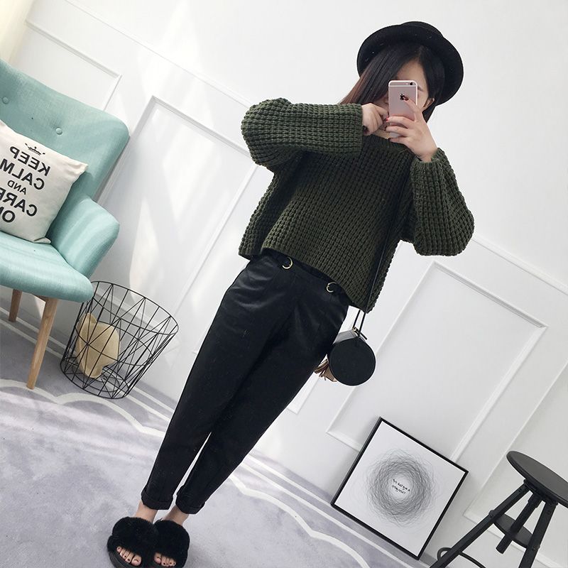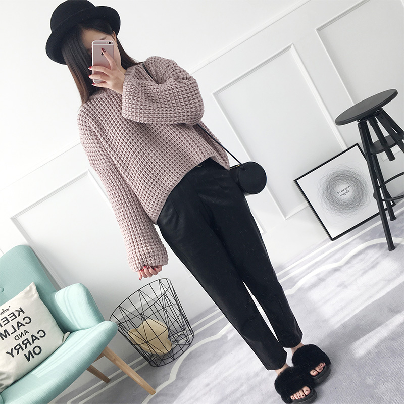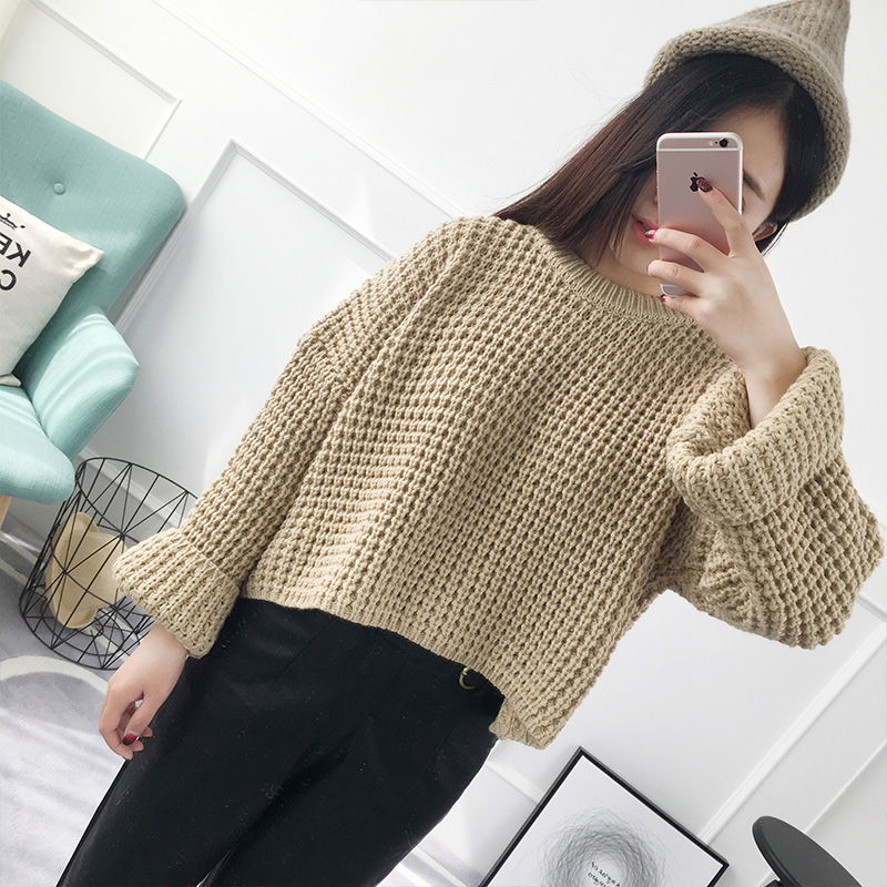 / 套頭毛衣女秋冬韓版短款寬松粗毛線純色針織衫外套女裝新款潮