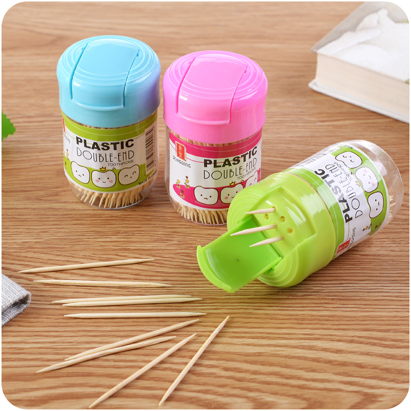 / 竹制環保牙簽精致雙頭細頭酒店家用餐廳盒裝便攜式一次性牙簽盒子