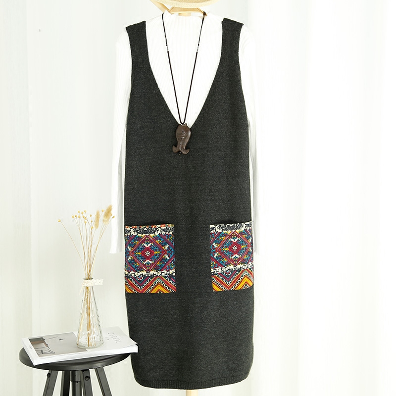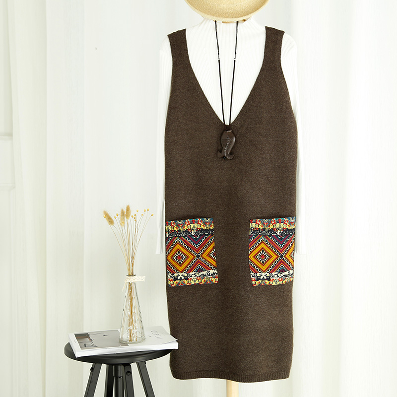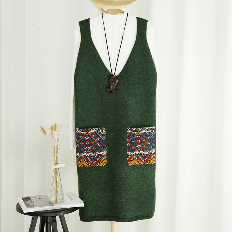 / 韓版中長款套頭毛衣女背心打底衫口袋針織衫馬甲春裝新款女裝