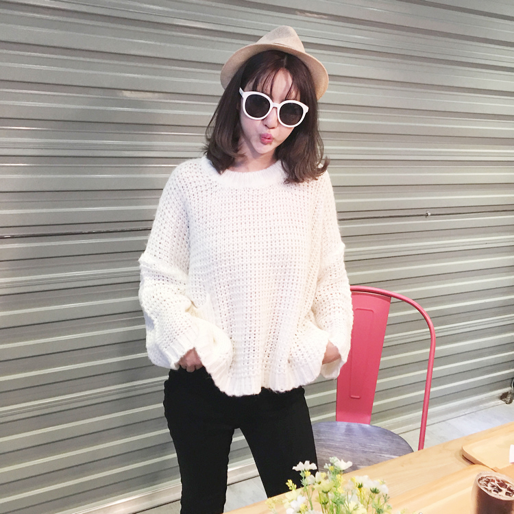 秋冬新款寬松破洞女裝薄款打底衫上衣韓版套頭蝙蝠長袖針織衫